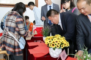 给嘉宾佩戴胸花